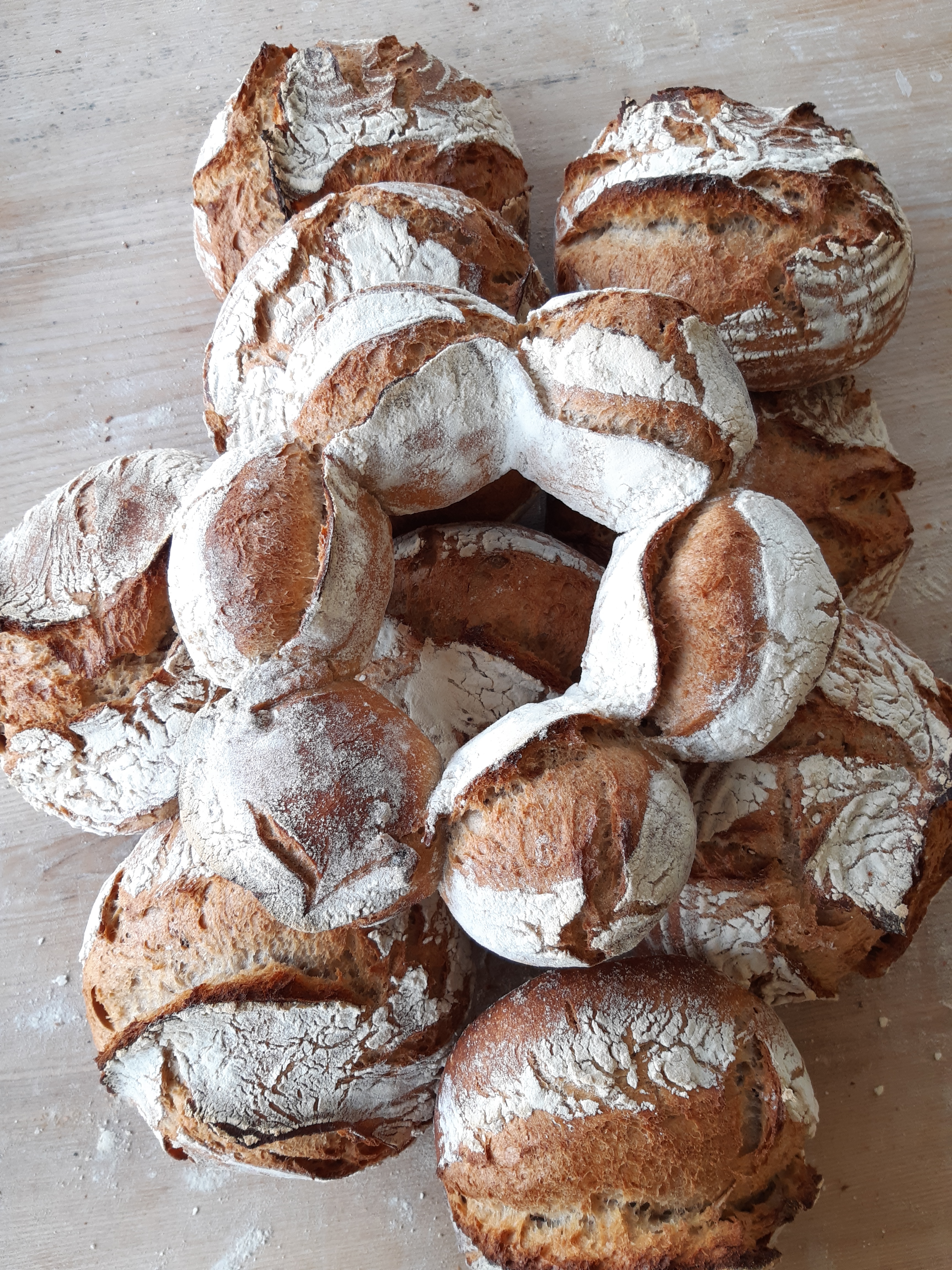 Notre fournil est situé dans le bourg de Faycelles, sur les hauteurs de Figeac. Nous fabriquons une gamme de pains variés et panifiés au levain naturel. Nous proposons également des brioches et des biscuits.